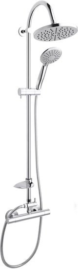 В комплекте | верхний душ, держатель, штанга, полочка/мыльница, смеситель, душевой шланг, лейка ручная |