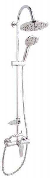 В комплекте | верхний душ, держатель, штанга, полочка/мыльница, смеситель, душевой шланг, лейка ручная |
