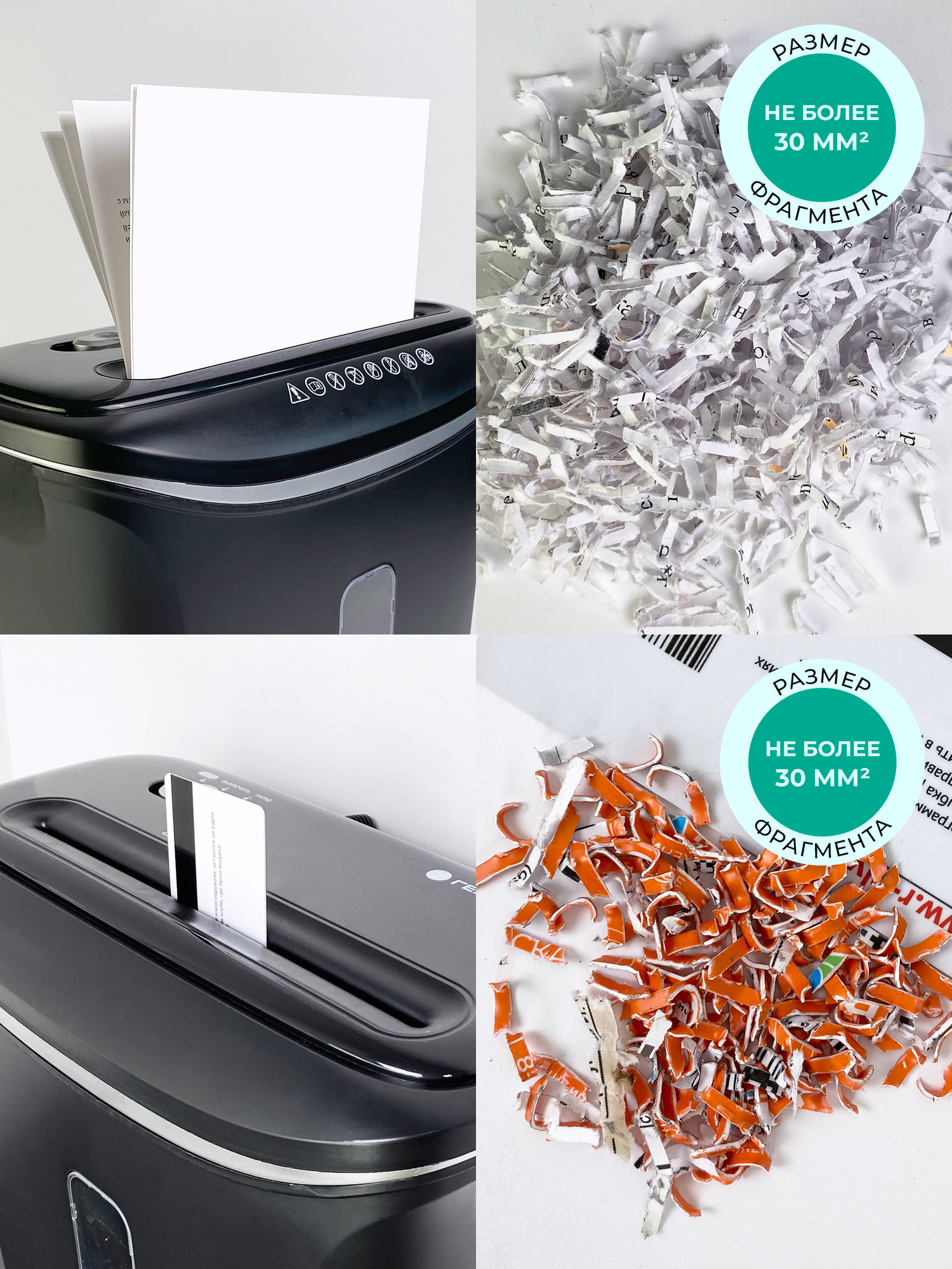 | Уничтожаемые предметы | бумага, пластиковые карты, скобы от степлера |