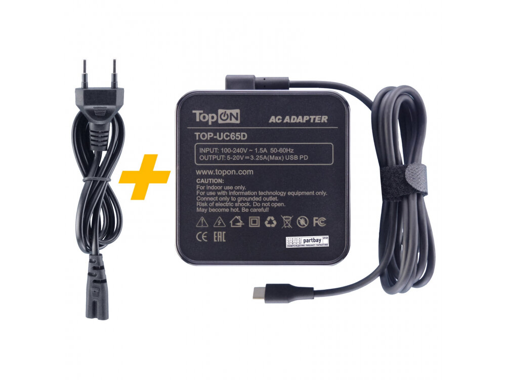Зарядное устройство TopON TOP-UC65D 65W c разъемом USB Type-C для ноутбуков Macbook, HP, Dell, Asus, Lenovo, Acer, Черный