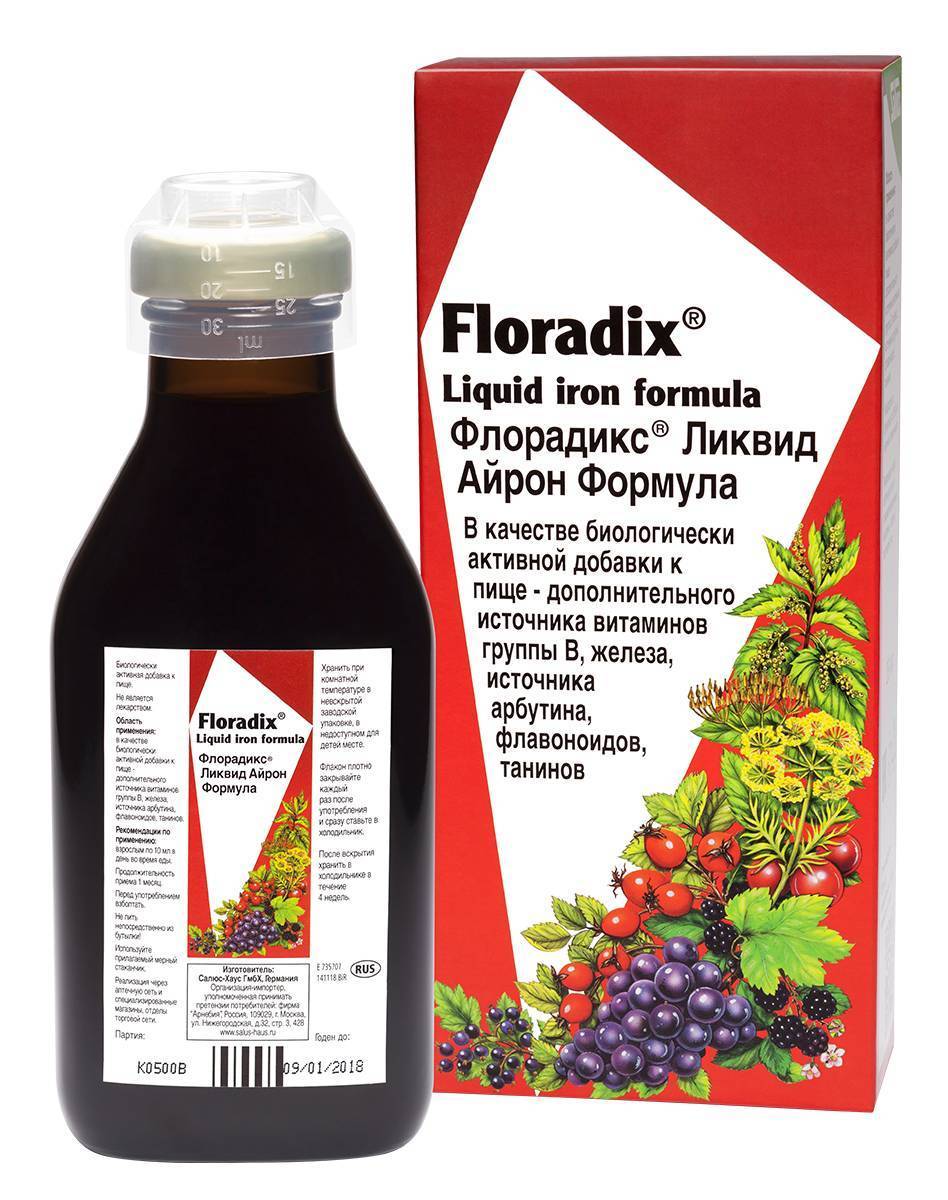 Натуральный витаминизированный тоник с биодоступным железом. Флорадикс Ликвид Айрон Формула – это комбинация водных экстрактов и соков 16 видов растений, обогащенная витаминами и глюконатом железа. Входящий в состав тоника глюконат железа, по многочисленным данным, является наиболее биодоступной формой двухвалентного железа. При приеме в рекомендуемой дозе не вызывает запоров. Дополнительный источник витаминов группы В, железа, источник арбутина, флавоноидов, танинов. Прием БАД к пище в рекомендуемой дозе (10 мл в день) обеспечивает суточную потребность в железе на 54%* 7,5 мг витамине В1 на 57 %* 0,8 мг витамине В2 на 56%* 0,9 мг витамине В6 на 20%* 0,4 мг витамине В12 на 60%* 0,0006 мг * от «Средняя суточная потребность взрослого человека (ССП), Приложение 2 к ТР ТС 022/2011» Биологически активная добавка к пище (не является лекарством).