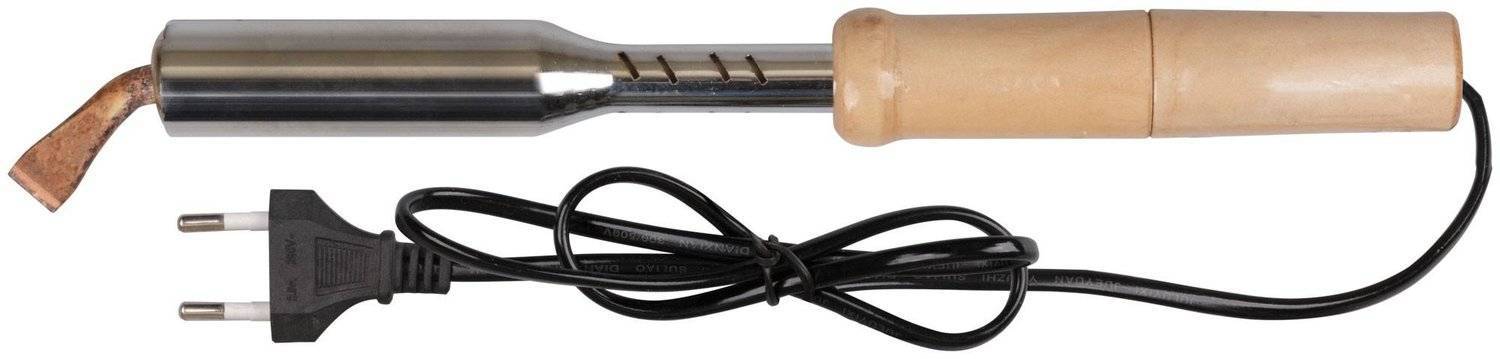 Паяльник с деревянной ручкой и мощностью 100 Вт от производителя Mos — это надёжный инструмент для пайки и лужения различных деталей. Благодаря удобной ручке из дерева, работа с паяльником становится комфортной и безопасной. При остывании припой затвердевает и фиксирует компоненты на месте.Преимущества Удобная деревянная ручка обеспечивает комфорт при работе и предотвращает скольжение в руке. Мощность 100 Вт позволяет быстро нагревать паяльник и расплавлять припой, что ускоряет процесс пайки. Медное жало с долговечным покрытием устойчиво к коррозии и окислению, что гарантирует долгий срок службы инструмента.