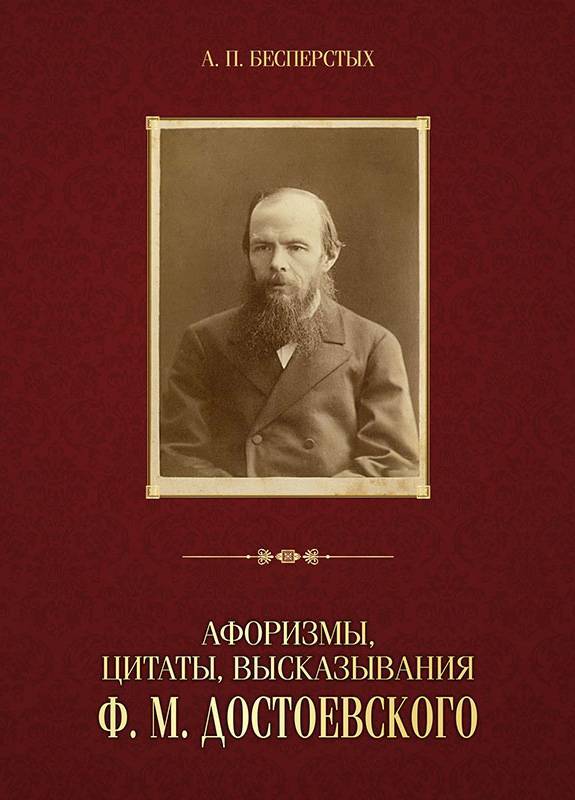 Словарь афоризмов Достоевского, составленный литератором и филологом А. П. Бесперстых, насчитывает около 1200 единиц (более 420 словарных статей). Кроме собственно афоризмов в их классическом понимании, в сборник включены также и другие размышления великого писателя-пророка и его оригинальные образные выражения. Творчество Ф. М. Достоевского – вершина русской классической литературы. Сегодня оно актуально как никогда, ибо в своих произведениях гениальный мыслитель остро поставил важнейшие для человечества проблемы: в чём сущность и назначение человека и жизни; какова природа добра и зла; что такое справедливость, законность и правосудие.
