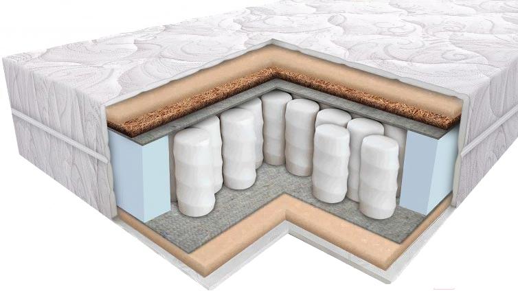 Особенности:Чехол из трикотажной ткани Jersey: структура трикотажной ткани – это соединённые между собой петли. Для производства трикотажных полотен используют синтетическое, шерстяное, хлопчатобумажное, шёлковое волокно. Отличительной чертой трикотажной ткани Jersey является пластичность, способность к растяжению и восстановлению формы. Матрасный чехол, выполненный из трикотажной ткани Jersey, допускается стирать при температуре до 60 градусов. Чехол съёмный, разделяющийся, с молнией по периметру. Материал Elfoam: современный гипоаллергенный материал с ячеистой структурой. Материал не токсичный, способный выдерживать продолжительные нагрузки. Его используют как мягкий наполнитель либо мягкую прослойку по периметру матраса (2 см). Независимый пружинный блок TFK 150: пружины в данном блоке скомпонованы в шахматном порядке («пчелиные соты»), за счёт чего увеличивается их количество на 1 м.кв., а значит усиливается и поддержка позвоночника (ортопедический эффект). Пружинный блок рассчитан на нагрузку до 150 кг на одно спальное место. Идеально подходит для людей с весом более 110 кг. Пружины свободно пропускают воздух, что положительно сказывается на теплообмене. Количество пружин на 1 м.кв. – 300 штук. Кокосовая койра: производится из тщательно отобранных волокон кокосовой пальмы в виде плит и характеризуется высоким уровнем жёсткости. Вместе с тем, кокосовая койра довольно гибкая и отличается хорошей воздухопроницаемостью. Её используют в качестве наполнителя для придания матрасу жёсткости. Для лучшего скрепления волокон кокосовая койра пропитывается латексом (1 см). Термохлопок: тонкий и прочный материал, который укладывается сверху и снизу от пружинного блока и защищает матрас от вдавливания пружин в материалы наполнения.