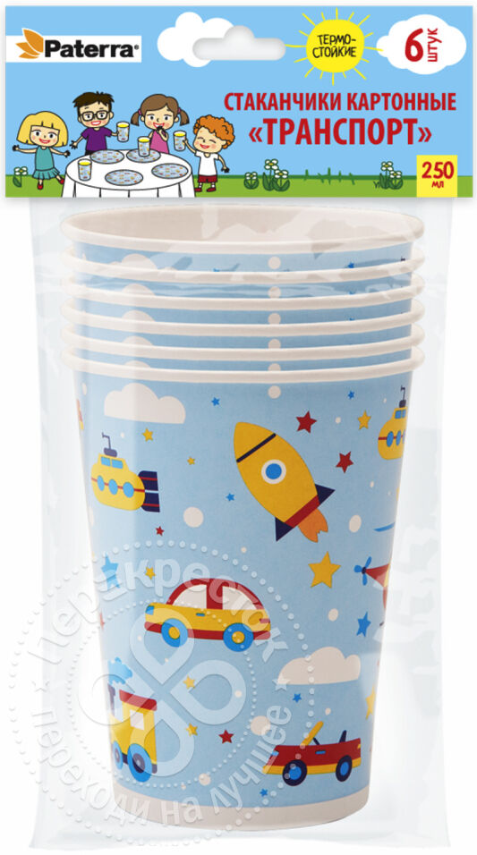 Бумажные стаканы Paterra Транспорт 250мл 6шт 401-865