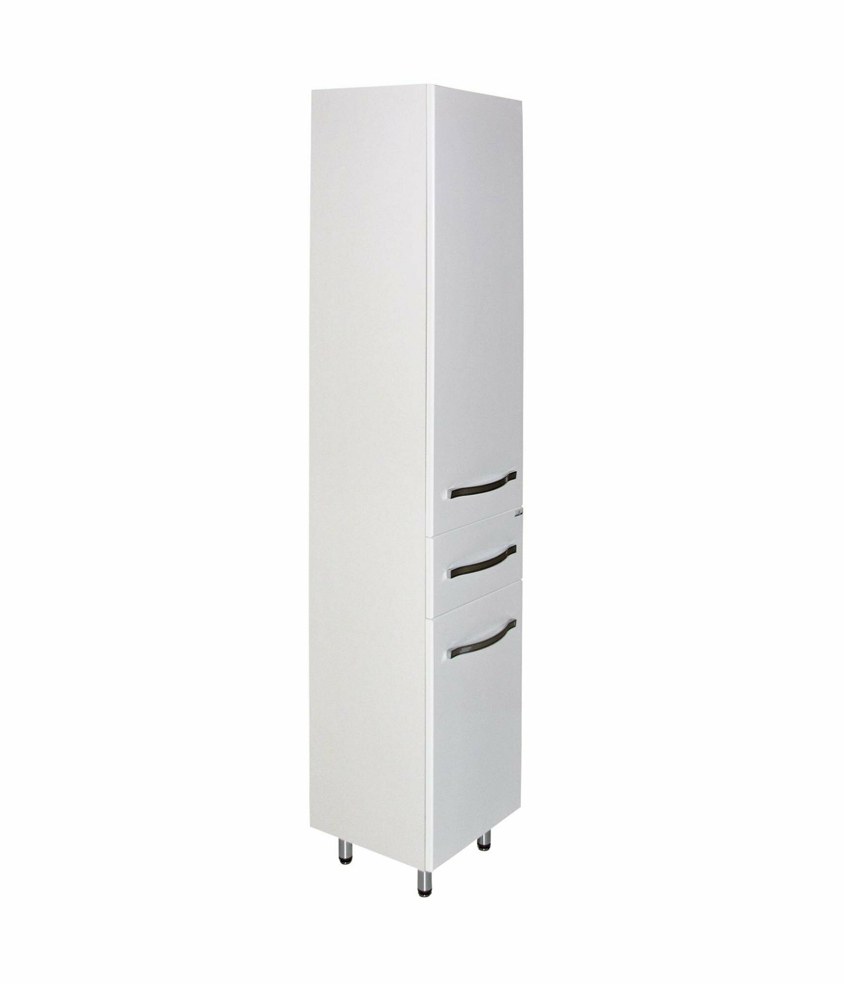 Ослепительно белый цвет, строгие грани фасадов, холодный блеск ручек делают этот пенал похожим на драгоценный камень. Этот шкаф украсит любую ванную комнату.