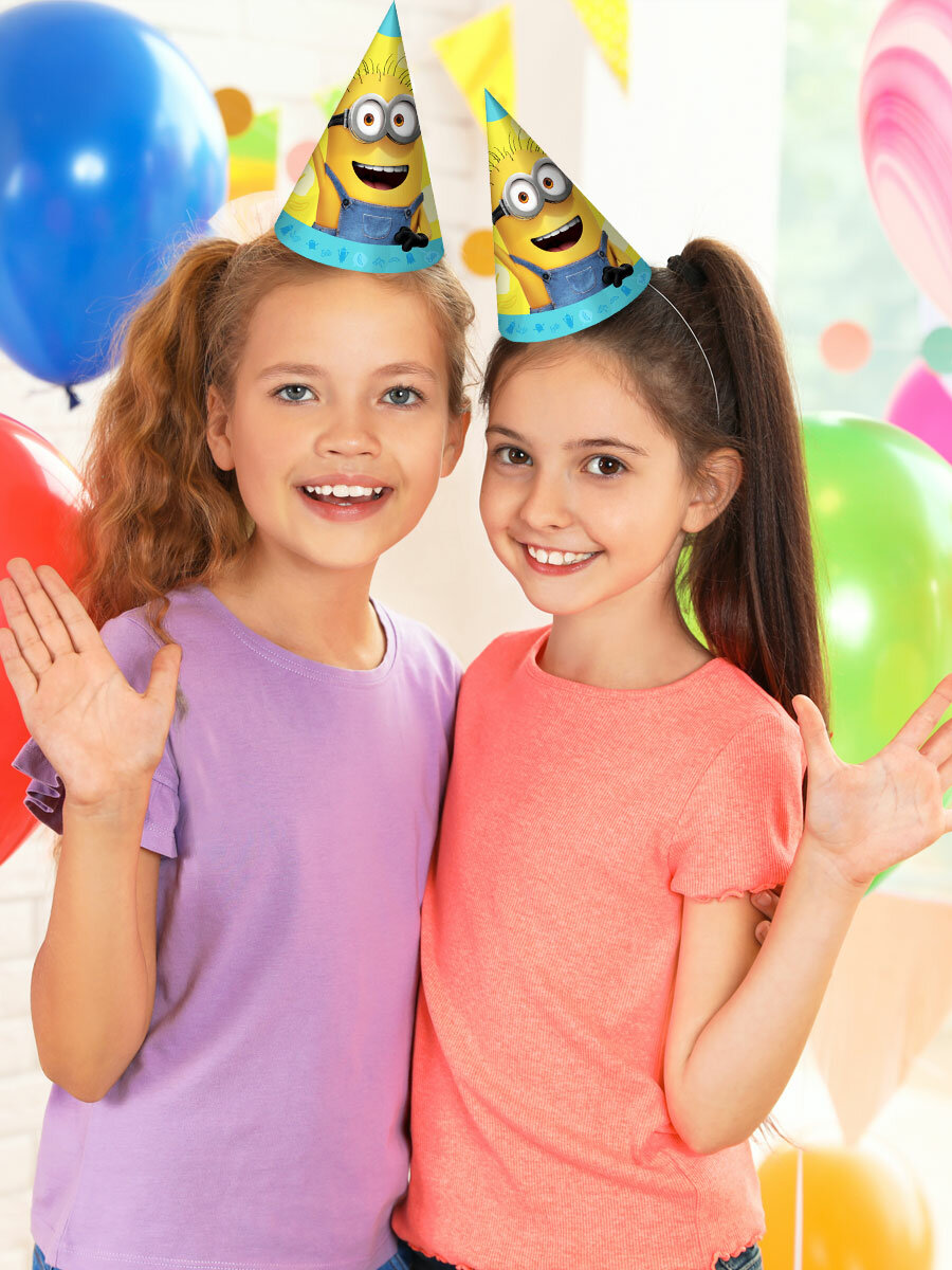 Порадуйте маленького именинника и его гостей забавными праздничными колпачками с изображением миньонов.