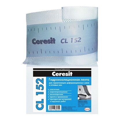 Герметизирующая лента CL 152 представляет собой сетку из полиэстера с водонепроницаемым покрытием и предназначена для герметизации деформационных и угловых швов внутри и снаружи зданий при условии отсутствия негативного (со стороны основания) давления воды.