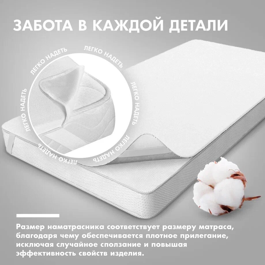 После покупки, как рекомендовано на этикетке, постирала на 60 градусов. То ли он сел, то ли изначально такой маленький, но на матрас еле еле натянулся, по длине не хватало как минимум 5см. Сверху тонкий материал типа трикотажа, нижний непромокаемый слой шуршит. Вот минут 5 я его рассматривала и гладила руками, потом решила снять - вокруг матраса образовалось статическое поле в 20 см,это была просто жесть, все волосы дыбом встали, пришлось все брызгать антистатиком, а наматрасник убирать в ящик. Деньги на ветер.
