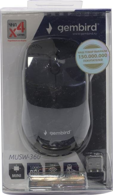 Gembird - это практичная и надежная беспроводная компьютерная мышь с двумя кнопками управления и чувствительным колесом прокрутки. Эта мышь создана для максимально удобной работы как правой, так и левой рукой, не требует установки специальных драйверов и легко подключается к любому персональному компьютеру или ноутбуку с помощью USB-приемника. Мышь работает по радио-каналу, имеет радиус действия до 10 метров, поддержку разрешений до 1000dpi. Питание устройства осуществляется от батарейки типоразмера ААА. Выполненная из высокотехнологичного пластика, мышь обладает высокой надежностью и простотой в использовании, а благодаря современным технологиям производства - увеличенным сроком службы и производительностью.