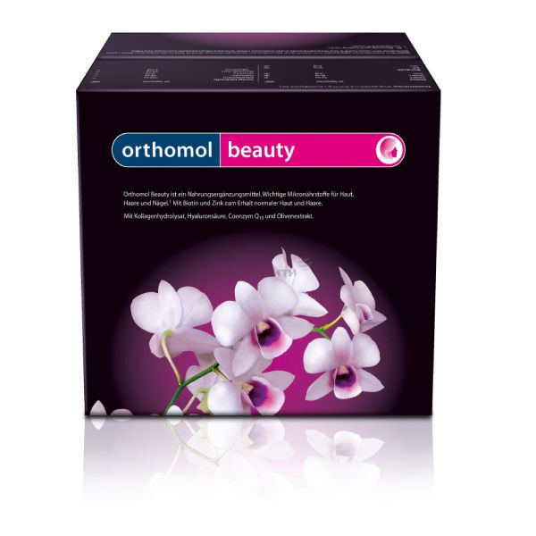 Orthomol Beauty-новый напиток для сохранения естественной красоты с инновационным сочетанием коллагена, гиалуроновой кислоты и комплекса Phytamin-Q 10. Включите комплекс Orthomol Beauty в свой регулярный ритуал красоты и обеспечьте вашу кожу, волосы и ногти здоровьем. Гиалуроновая кислота и коллаген обеспечивают эластичность кожи, замедляют старение; Оливковый экстракт оказывает хорошее влияние на состояние кожи, защищая её от вредного разрушающего воздействия УФ-лучей, обладает антиоксидантными и противовоспалительными свойствами; Витамин C способствует естественному стимулированию выработки коллагена для нормальной функции кожи, а также витамин Е, Цинк и Селен, которые защищают клетки от окислительного процесса; Биотин и Цинк способствуют улучшению состояния кожи, оказывают положительный результат для роста ногтей и волос, делая их прочными и здоровыми; Коэнзим Q10 отвечает за синтез энергии и регулирует использование кислорода организмом. Тормозит естественные процессы старения, борется с действием свободных радикалов, обеспечивает выведение токсинов, улучшение внешнего вида кожи.