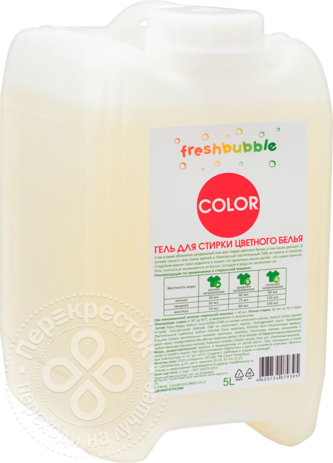 Абсолютно натуральный гель для стирки цветного белья freshbubble. В основе нашего геля растительный ПАВ из кокоса и глюкозы плюс комплекс энзимов. Энзимы прекрасно справляются с пятнами и загрязнениями, плюс сохраняют цвет.