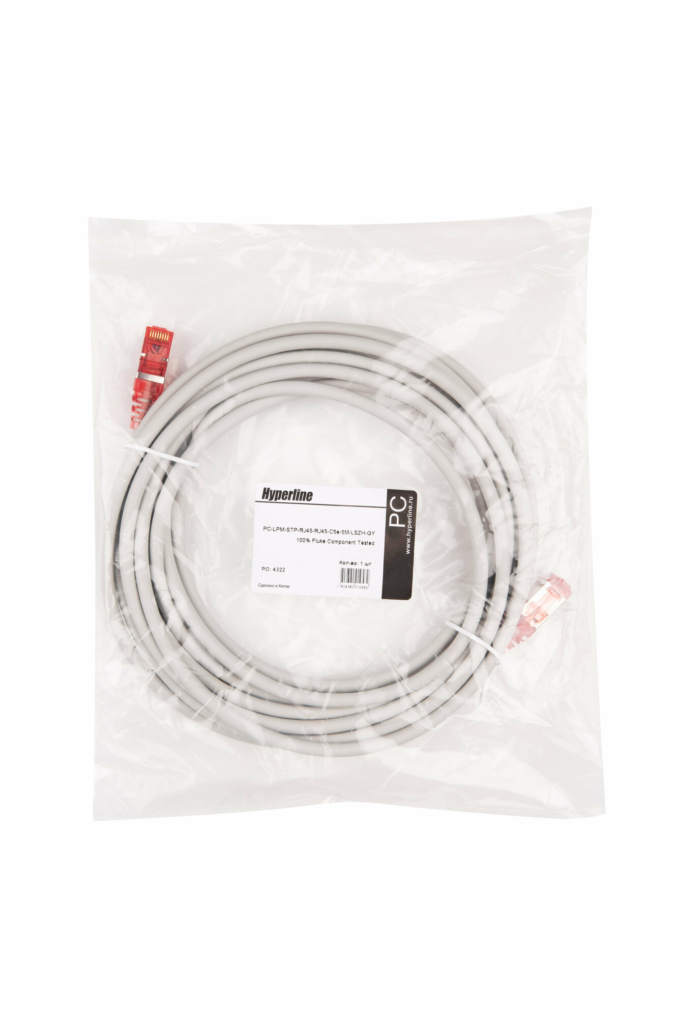 Кабель патч-корд FTP 5e кат. 5м. Hyperline PC-LPM-STP-RJ45-RJ45-C5e-5M-LSZH-GY