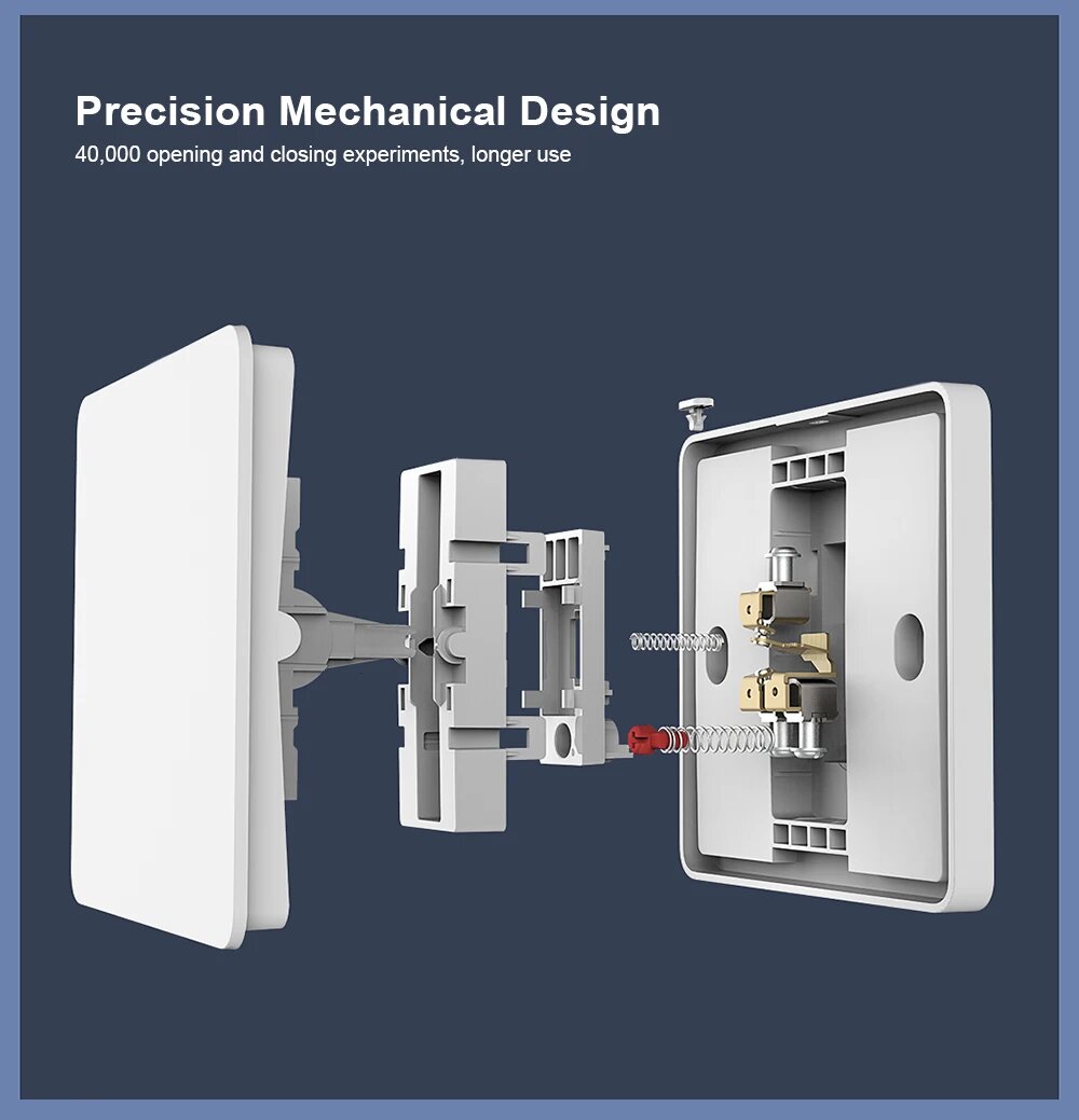 Слишком громкий щелчок, слишком длинный ход клавиши, слишком глянцевый пластик... Слишком дешевое устройство, вот такое впечатление от этого выключателя. Но свою функцию выполняет, с умной лампой этого же производителя работает корректно в режиме флекс