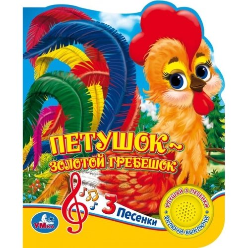 Компактная книга из прочного безопасного картона с кнопкой для прослушивания. Любимые авторы, народные фольклор, истории по мультфильма, и конечно, 3 песенки!
