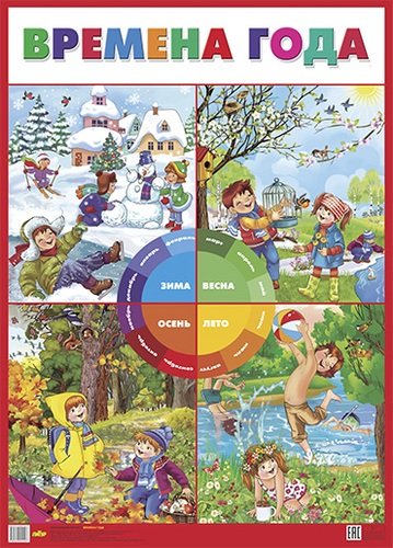Плакат Времена года познакомит детей с 4 временами года, месяцами и с характерными признаками каждого времени года.