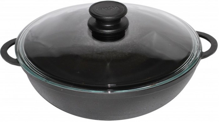 Биол Сковорода-вок чугунная стекляная крышка 30 см