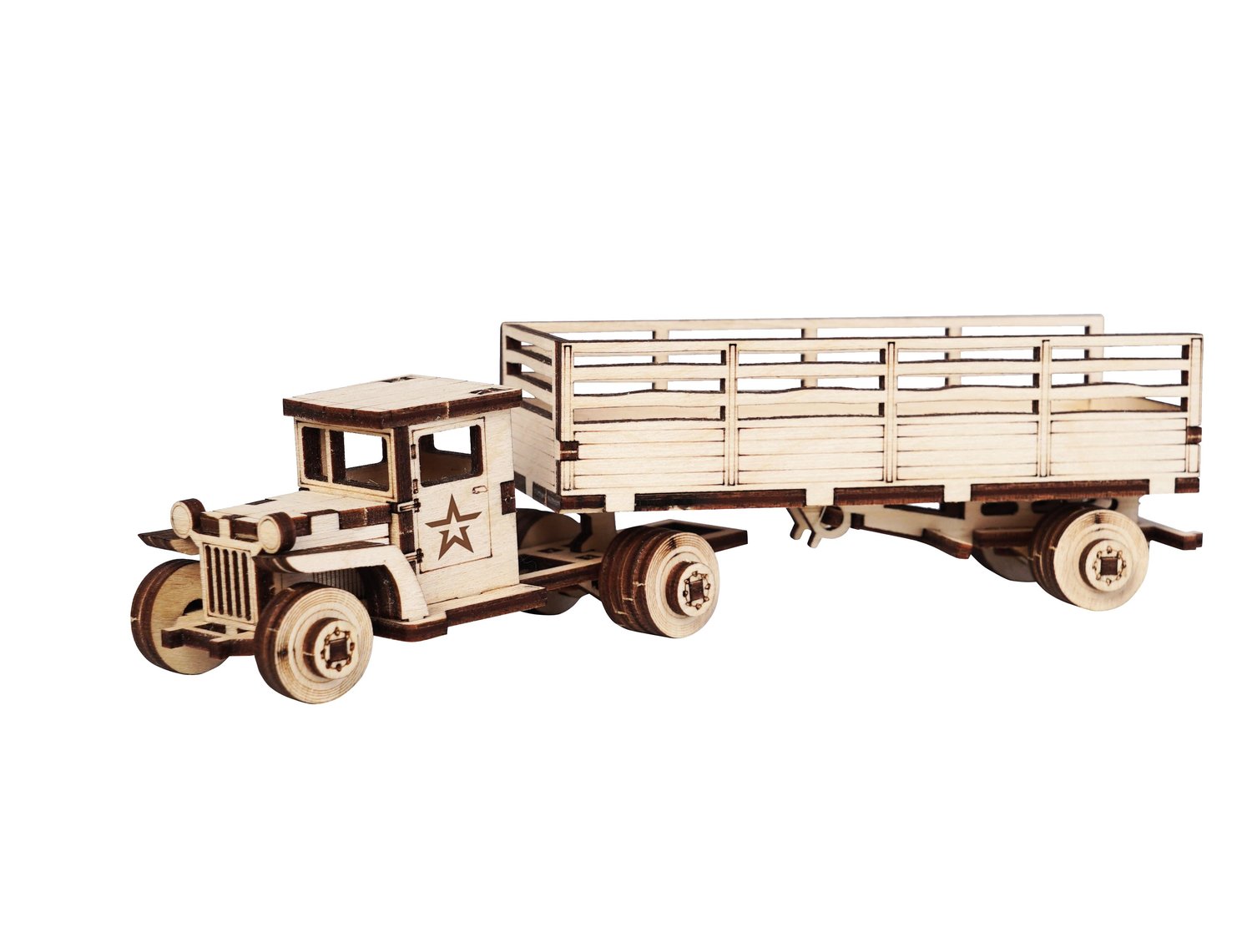 Экологически чистые, развивающие конструкторы помогут вашему ребенку развить мелкую моторику рук, воображение, пространственное мышление, логику и предметное моделирование. Все детали выполнены из качественной древесины и имеют сильный насыщенный запах дерева. Наборы укомплектованы клеем ПВА и наждачной бумагой. Любой конструктор после сборки можно раскрасить акриловыми и гуашевыми красками, но даже без этого в результате получается полноценная красивая игрушка с подвижными элементами. Набор Советский грузовик ЗИС-10 Тягач подходит для ребенка от 5 лет. У собранной модели вращаются колеса. Количество деталей:58 шт. Размеры: 190х50х50 мм. Что в наборе: - клей ПВА; - наждачная бумага; - подробная инструкция