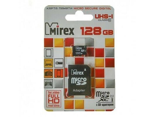Карта памяти Mirex microSDXC 128 ГБ [13613-AD10S128] micro SDXC 128 Gb Class 10 UHS-I + адаптер (черный)