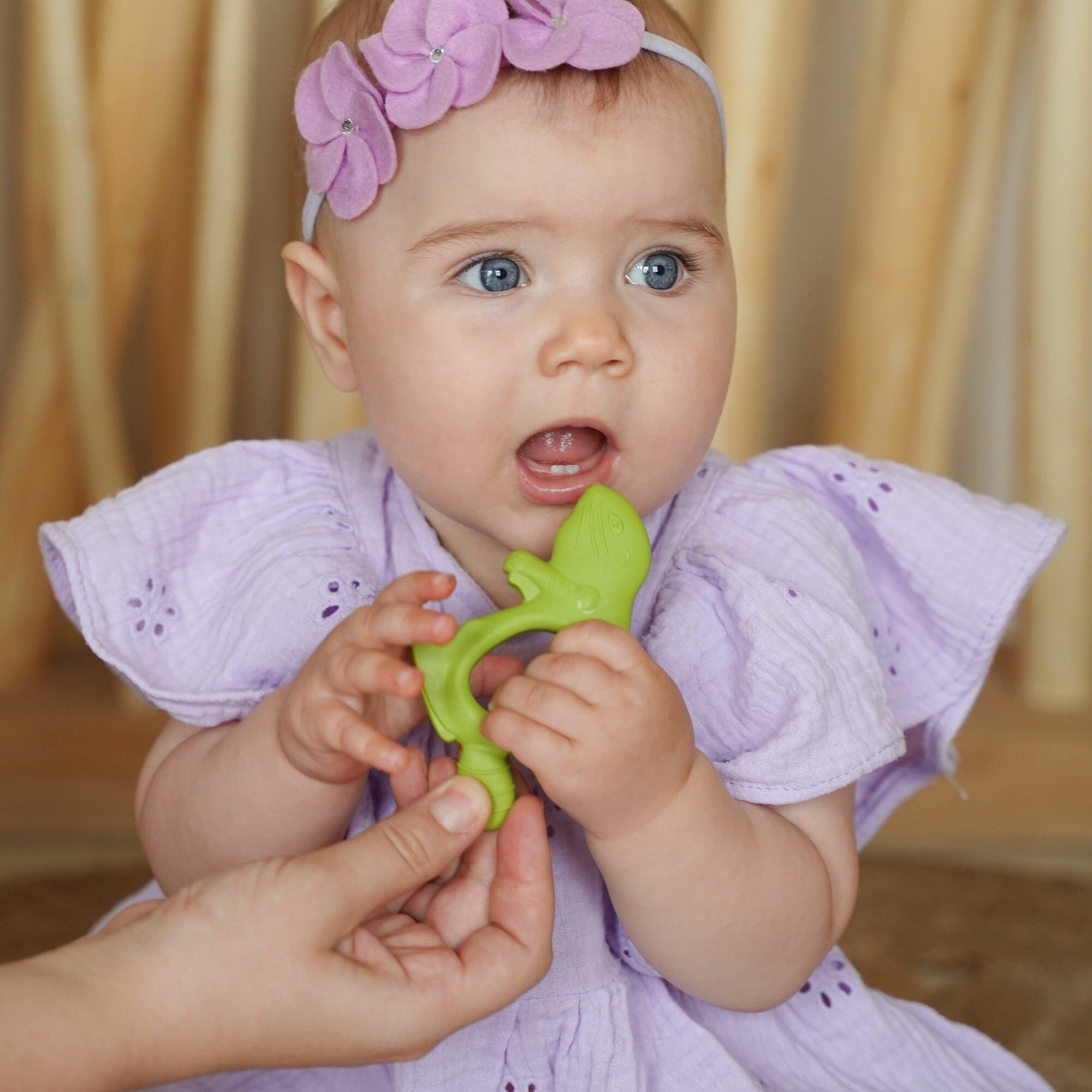 Прорезыватель "Земляника" на ножке изготовлен из мягкого и безопасного материала. Смягчает боль при прорезывании зубов. Прорезыватель можно охладить в холодильнике - это максимально облегчит боль в деснах у малыша во время прорезывания зубов. Малышу легко держать изделие благодаря специальному дизайну и небольшому весу.
