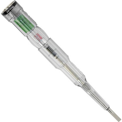 Её принцип действия следующий: ток попадает в инструмент через жало, проходит через резистор, который ограничивает его величину, и доходит до контакта лампы. Ее второй контакт соединен с выводом на торце рукоятки отвертки. При использовании инструмента необходимо коснуться провода под напряжением жалом отвертки, а торца ее рукоятки пальцем руки. В результате цепь замкнётся и лампочка засветится.