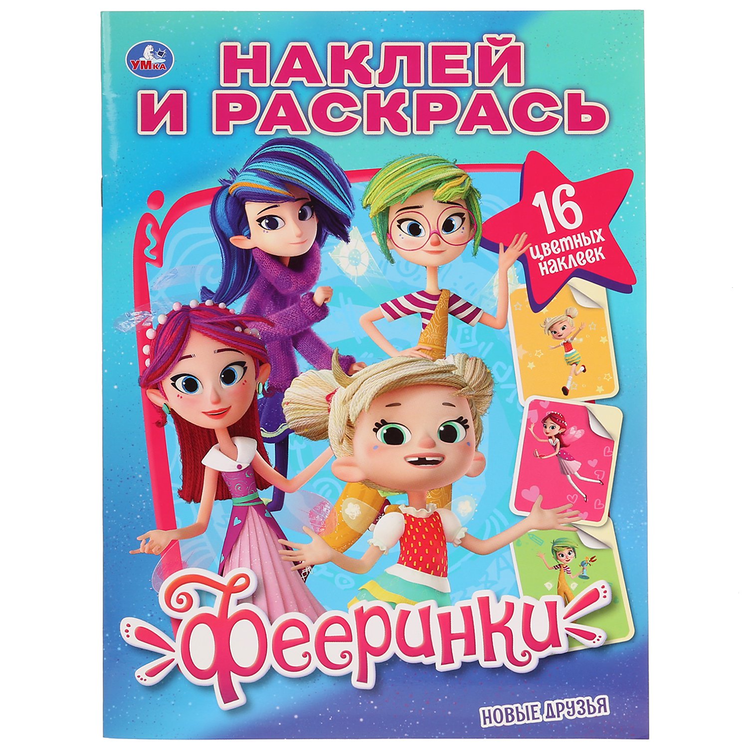"УМКА". НОВЫЕ ДРУЗЬЯ. ФЕЕРИНКИ (НАКЛЕЙ И РАСКРАСЬ А4) ФОРМАТ 214Х290 ММ. ОБЪЕМ: 16 СТР. в кор.50шт; СИМБАТ ООО, 2020