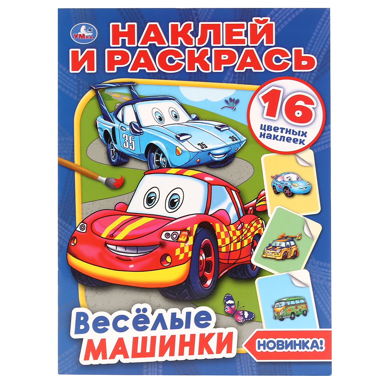 Раскраска "Весёлые машинки" из серии "Наклей и раскрась" ТМ "УМка" обязательно понравится вашему ребёнку: