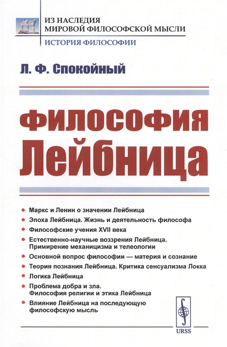 В предлагаемой вниманию читателя книге, написанной советским философом Л. Ф. Спокойным, дается критический анализ философского учения выдающегося немецкого мыслителя Г. В. Лейбница. Автор связывает это учение с историческими условиями развития Германии в XVII веке, с естественно-научными работами Лейбница, останавливаясь особенно подробно на проблемах методологии и логики. Книга рассчитана на студентов и аспирантов, изучающих историю философии, преподавателей и научных работников, пополняющих свое философское образование, и всех, кто интересуется философией Лейбница.