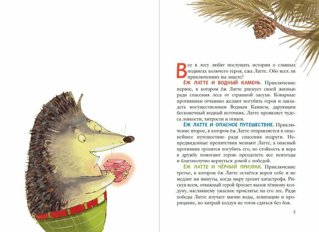 На лес надвигается смертельная опасность: засуха! Ужасное горе для всех обитателей и, конечно, для ежа Латте. Единственный способ спасти родные земли — найти Водный Камень. А чтобы достать его, нужно отправиться в Северный лес, обойти тысячу стражей и обхитрить самого короля медведей. Такая задача под силу только самому смелому и умному герою. Такому, как ёж Латте.