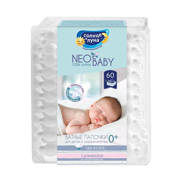Ватные палочки с ограничителем Neo Солнце и луна eco 60 шт
