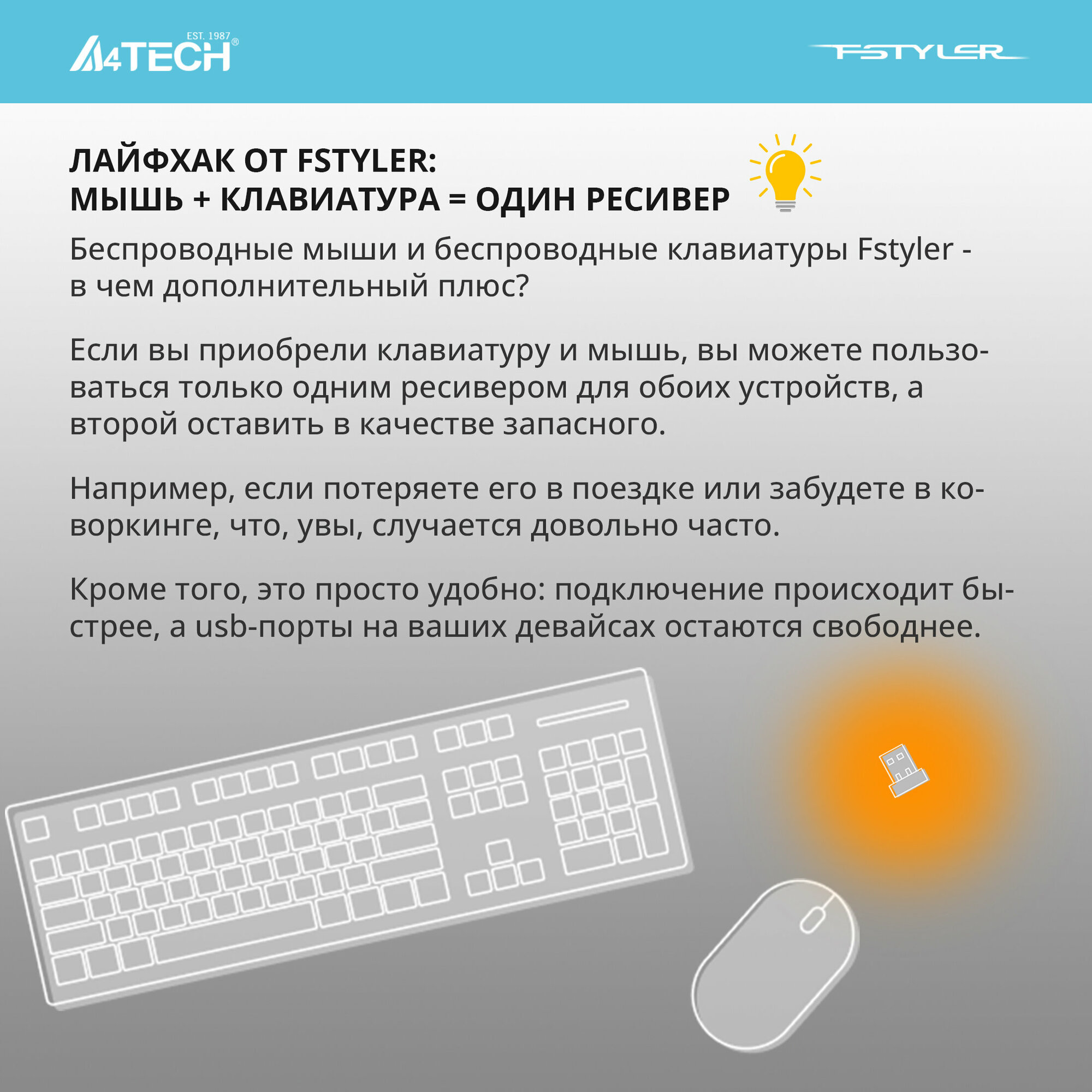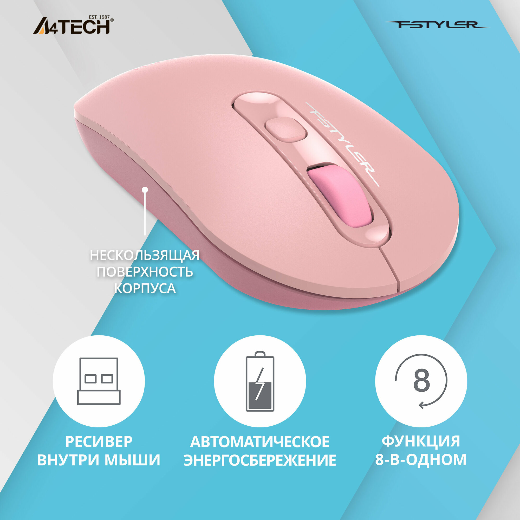 Мышь A4TECH Fstyler FG20S, оптическая, беспроводная, USB, розовый [fg20s pink]