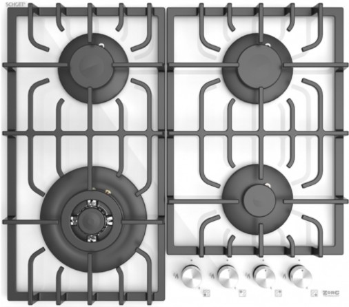 | Тип конфорок/зон нагрева | газовые стандартные (3 шт.), газовые «Двойная корона» (1 шт.) |