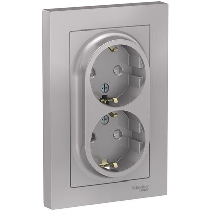 Розетка двойная с/з, с/шт Schneider Electric AtlasDesign 16А, в сборе, алюминий