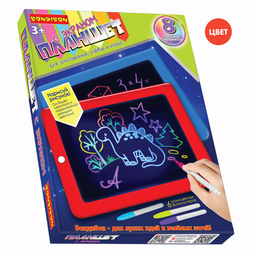 Планшет с экраном для рисования и подсветкой от Bondibon развивает моторику ребенка, креативное и пространственное мышление, фантазию, кругозор. Это прекрасный подарок для ребенка, который любит рисовать или только пытается начать это делать.
