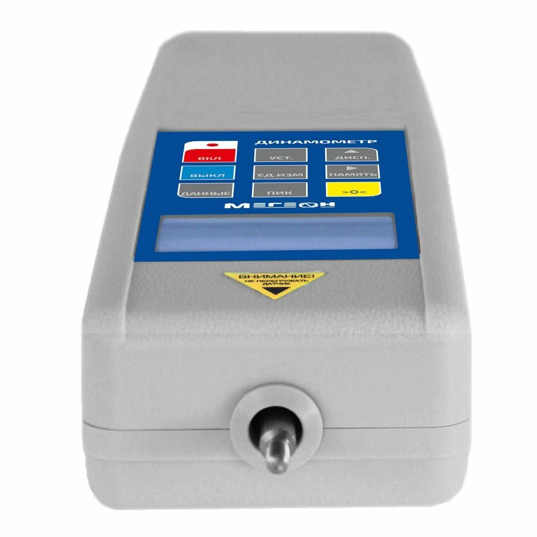 Цифровой динамометр МЕГЕОН со встроенным тензодатчиком - универсальный многофункциональный и высокоточный прибор для измерения нагрузки на растяжение и сжатие. Модель является самой высоконагруженной из линейки динамометров МЕГЕОН 03ХХХ. Изделие работает в диапазоне измерений от 1 до 1000Н с разрешением 0,1Н. Прибор используется в испытании различных изделий на растяжение-сжатие, измерения усилия вставки и разъединения, испытаниях на разрушение и т.д. В комбинации с различными испытательными платформами и зажимами можно создавать тестовые стенды различного назначения,например: для имитации нагрузок сжатия и растяжения, проведения тестов на излом, испытаний на усталость, разрыва и других видов испытаний. При помощи специального программного обеспечения прибор подключается к компьютеру, на котором в реальном времени будет выводиться кривая полученных данных и можно создавать протокол испытаний.Преимущества Высокая точность и разрешающая способность измерений Функция фиксации пиковых значений Настраиваемая функция сброса пиковых значений Память на 999 измерений Установка ускорения свободного падения Коммуникационный COM-порт 3 единицы измерения ЖК-дисплей с подсветкой Функция автовыключения