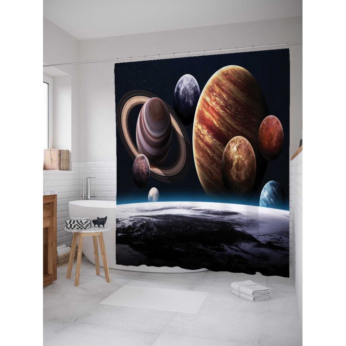 Шторка-занавеска для ванной JOYARTY Штора для ванной Солнечная система 180х200 см