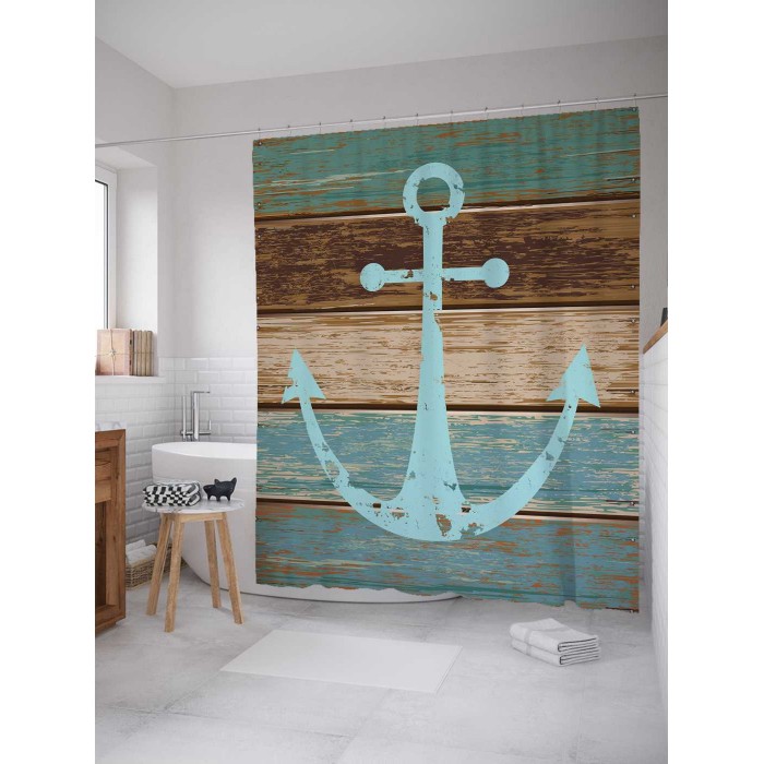 Шторка-занавеска для ванной JOYARTY Штора для ванной Потертый якорь на досках 180х200 см