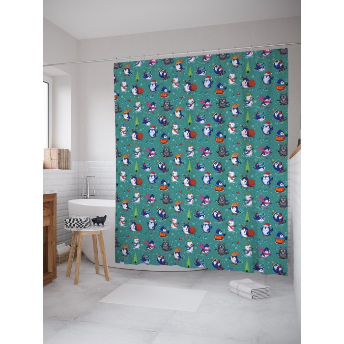 - Модель: Штора для ванной Зимние забавы зверей 180х200 см
