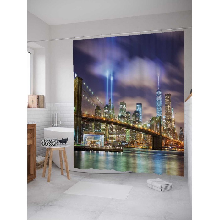 - Модель: Штора для ванной Мост в ночном городе 180х200 см