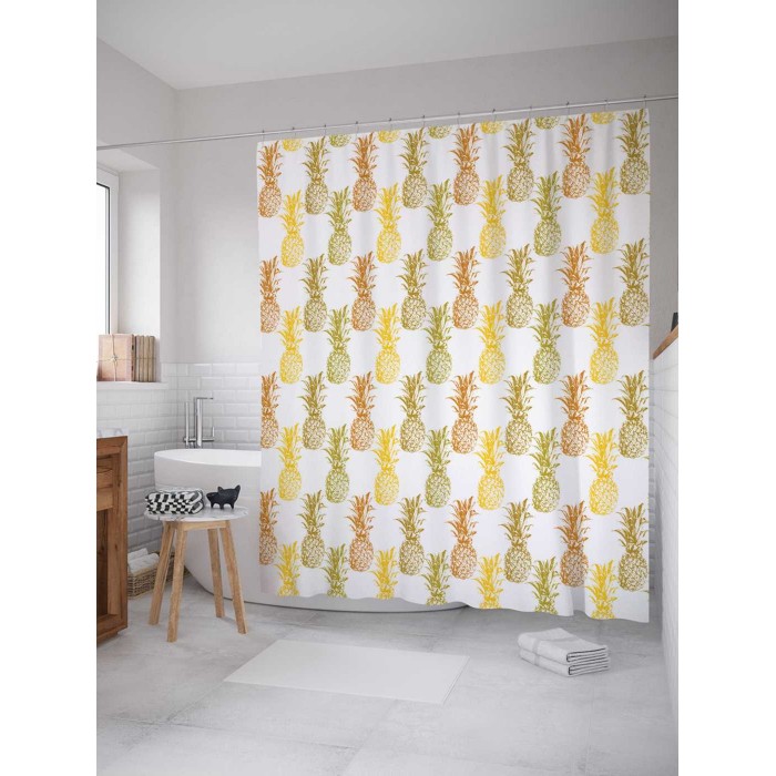 - Модель: Штора для ванной Цветные ананасы 180х200 см