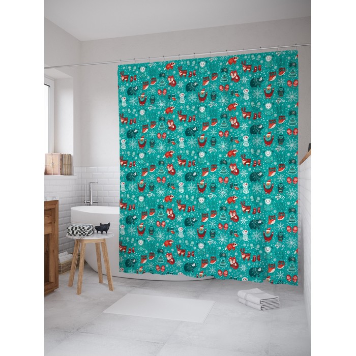 - Модель: Штора для ванной Новогоднее веселье у животных 180х200 см