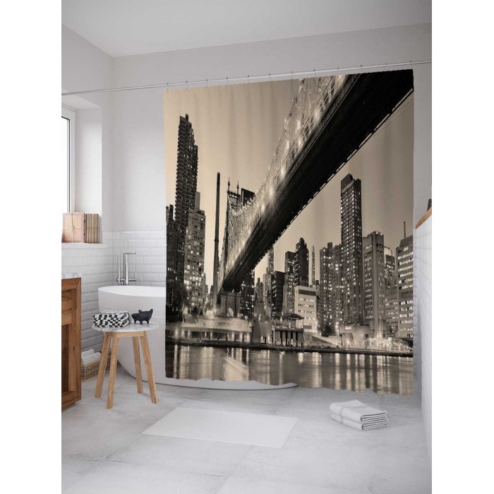 - Модель: Штора для ванной Сепия огней мегаполиса 180х200 см
