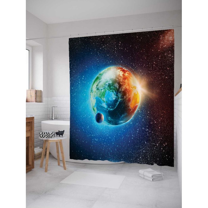 - Модель: Штора для ванной Земля из космоса 180х200 см