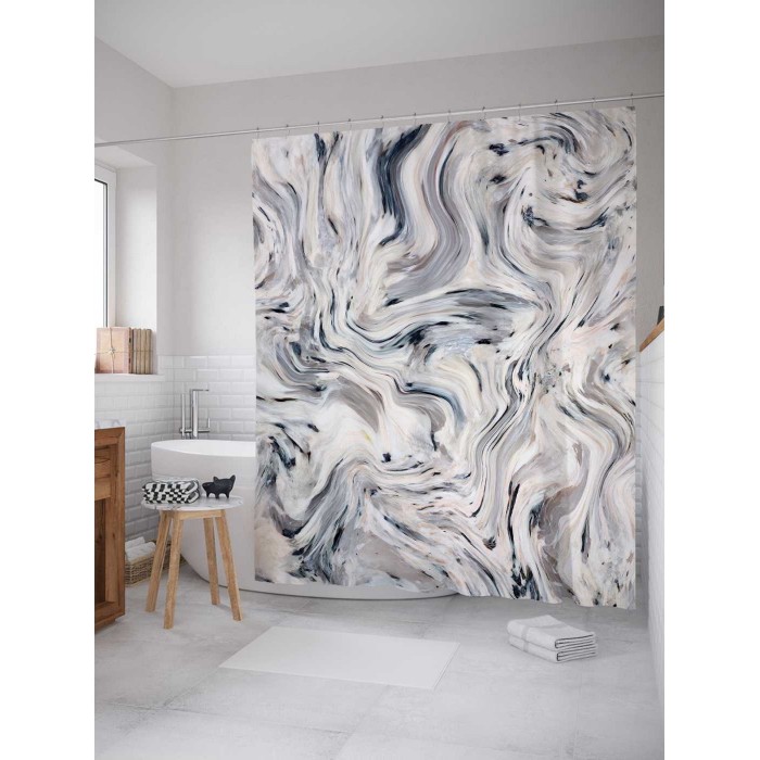 Красиво декорированная шторка, защищающая пол и оборудование ванной комнаты от брызг воды, изготовлена из полиэстера и обладает выраженными водоотталкивающими свойствами. Занавеска для ванной 180х200 комплектуется 12 прочными крючками из пластика и имеет в верхней части столько же обработанных на оверлоке отверстий. Декоративный рисунок нанесен на поверхность ткани при помощи фотопечати. Такие принты не боятся влаги и не смываются даже очень горячей водой.