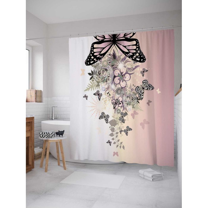 - Модель: Штора для ванной Ураган бабочек 180х200 см