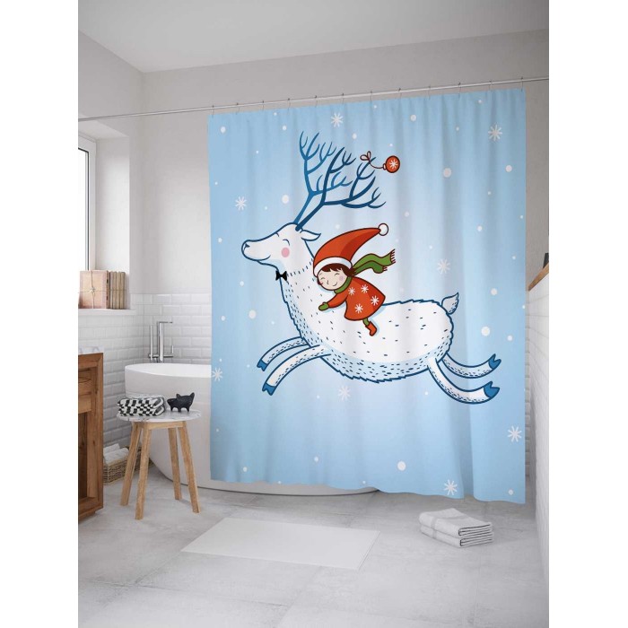 - Модель: Штора для ванной Девочка на олене 180х200 см