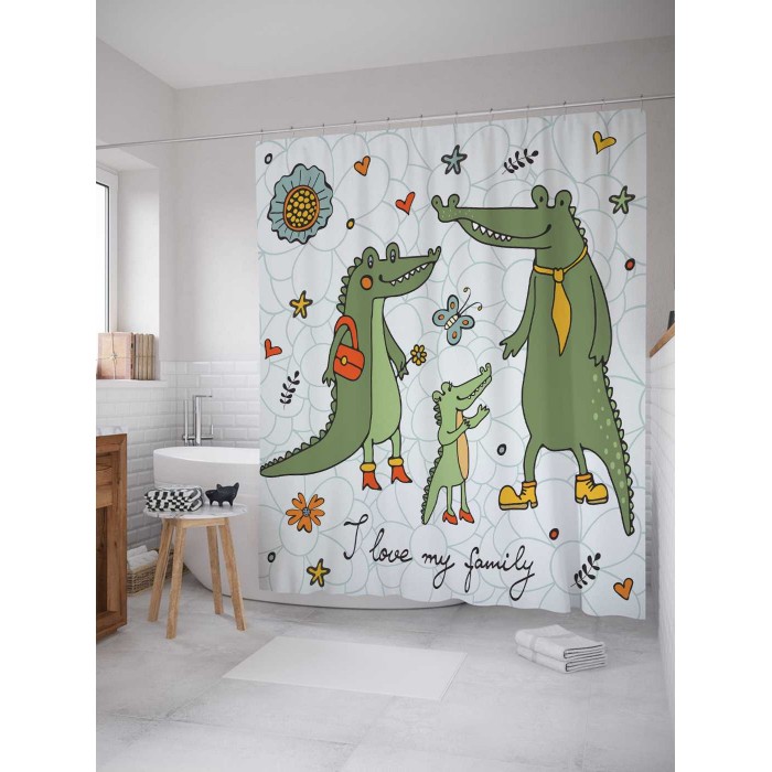 - Модель: Штора для ванной Семья крокодилов 180х200 см