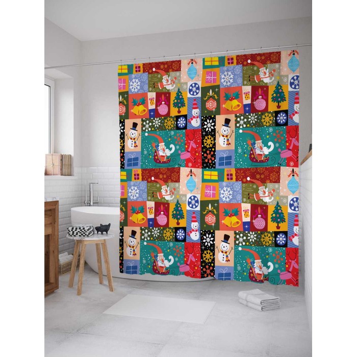 Шторка-занавеска для ванной JOYARTY Штора для ванной Встречай новый год 180х200 см