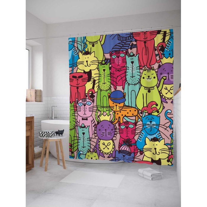 - Модель: Штора для ванной Кошачья площадь 180х200 см