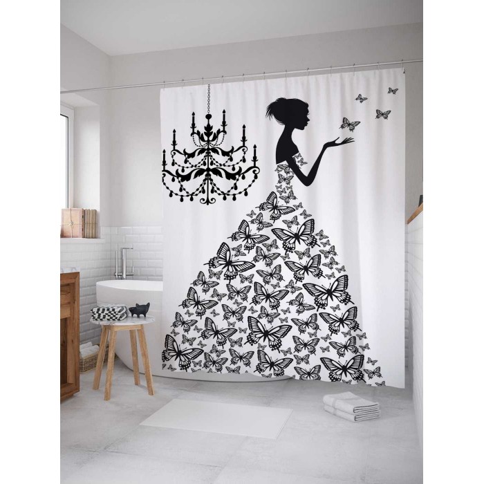 - Модель: Штора для ванной Платье из бабочек 180х200 см